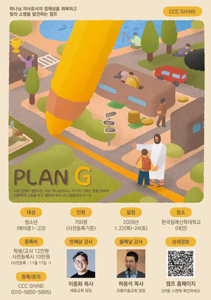 한국CCC 청소년 사역팀 SHINE이 내년 1월 22일부터 24일까지 대전 한국침례신학대학교에서 ‘Plan G’라는 주제로 SHINE 청소년 비전캠프를 개최한다.청소년들이 하나님의 말씀 안에서 하나님의 자녀라는 정체성을 회복하고 비전을 발견하는 기회가 될 이번 캠프는 청소년 700명, 교역자 및 교사 100명, CCC 대학생 리더 160명 등 총 1,000명 규모로 진행할 예정이다.이종화 목사(세움교회), 허용석 목사(모퉁이돌교회)가 주요 강사로 나서 복음과 비전, 소명에 대한 말씀으로 청소년들의 마음을 두드릴 예정이다. 주요 프로
