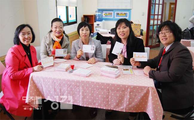 지난 24일, 광주교회(김관영 목사)에는 펜 굴러가는 소리가 가득했다. 팀장 김순애 집사를 필두로 7명의 여성으로 구성된 문서사랑 팀이 새신자와 장기결석자들을 위해 엽서를 작성하는 날이기 때문이다. 일주일에 한 번씩 모인 게 어느 덧 7년. 팀원들은 말씀묵상과 엽서를 받는 전도 대상자를 위해, 팀원들을 위해 중보기도한 후, 엽서 쓰기에 돌입한다. 이렇게 하루에 작성되는 엽서는 80여통, 한 사람당 10여 통이지만 생각보다 쉽진 않다. 편지를 기다리는 사람들을 위해 한 문장도 소홀히 작성할 수 없기 때문이다.