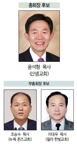 목사 부총회장 후보는 경선이 예상된다. 동부지방회에서 조승수 목사(뉴욕 퀸즈교회)와 중앙지방회에서 이대우 목사(필라 한빛교회)가 추천을 받은 상태다.