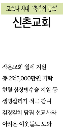 코로나19로 모두가 혹독한 시절을 보내고 있을 때 신촌교회는 물질과 정성과 노력을 들여 자신의 것을 아낌없이 내놓는 아름다운 헌신으로 어려움에 처한 이웃과 작은교회가 코로나를 극복할 수 있는 따뜻한 힘이 되어주었다.