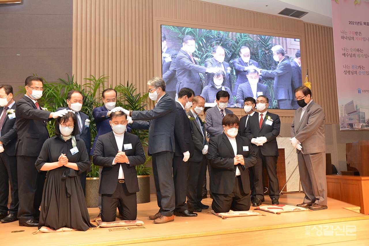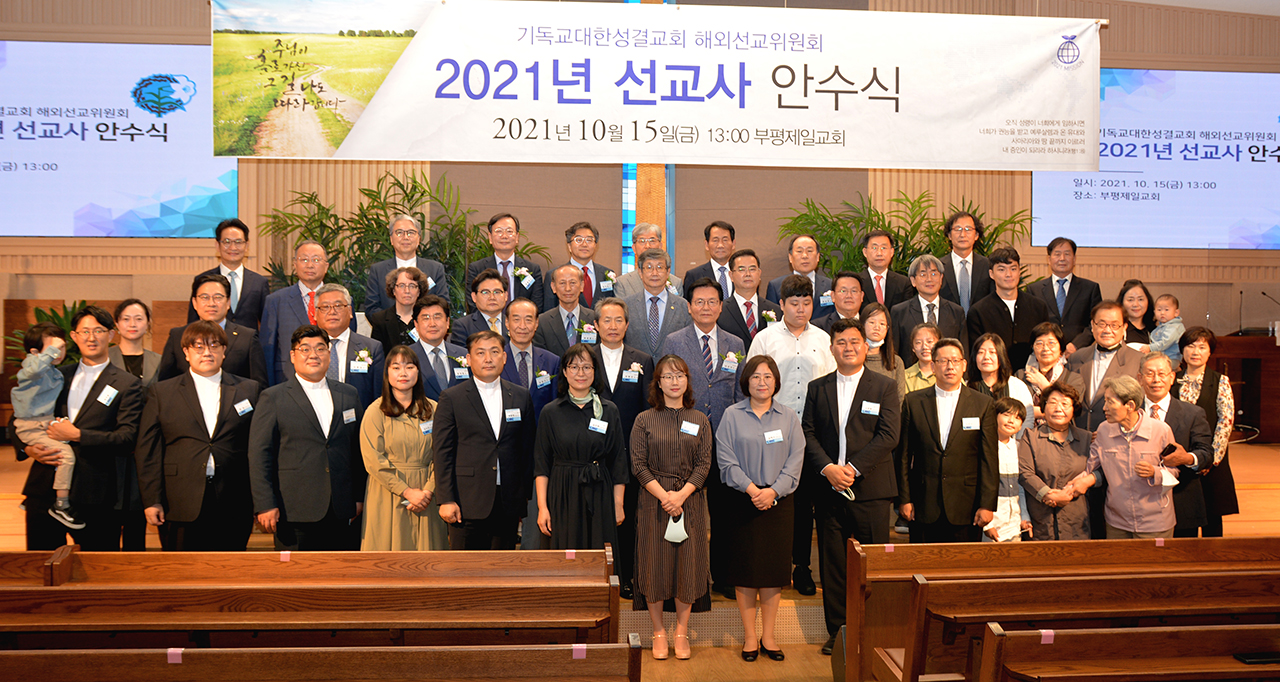 해외선교위원회(위원장 윤창용 목사) 2021 선교사 안수식이 지난 10월 15일 부평제일교회(김종웅 목사)에서 열려 교단 신임 선교사 11명에게 안수례를 베풀었다.