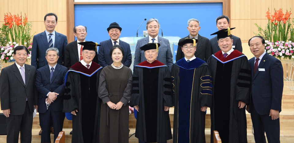 이상훈 총장은 김주헌 목사에게 학위를 수여하고 후드와 학위모를 착용시켜주었고 이사장 김신일 박사는 축하패를 전달했다. 지형은 총장도 영상 메시지를 보내며 학위수여를 축하했다.