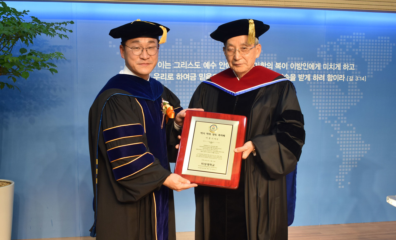 같은 날 명예박사 학위를 이춘오 목사는 미성대 최연소 명예박사로 기록되었다.