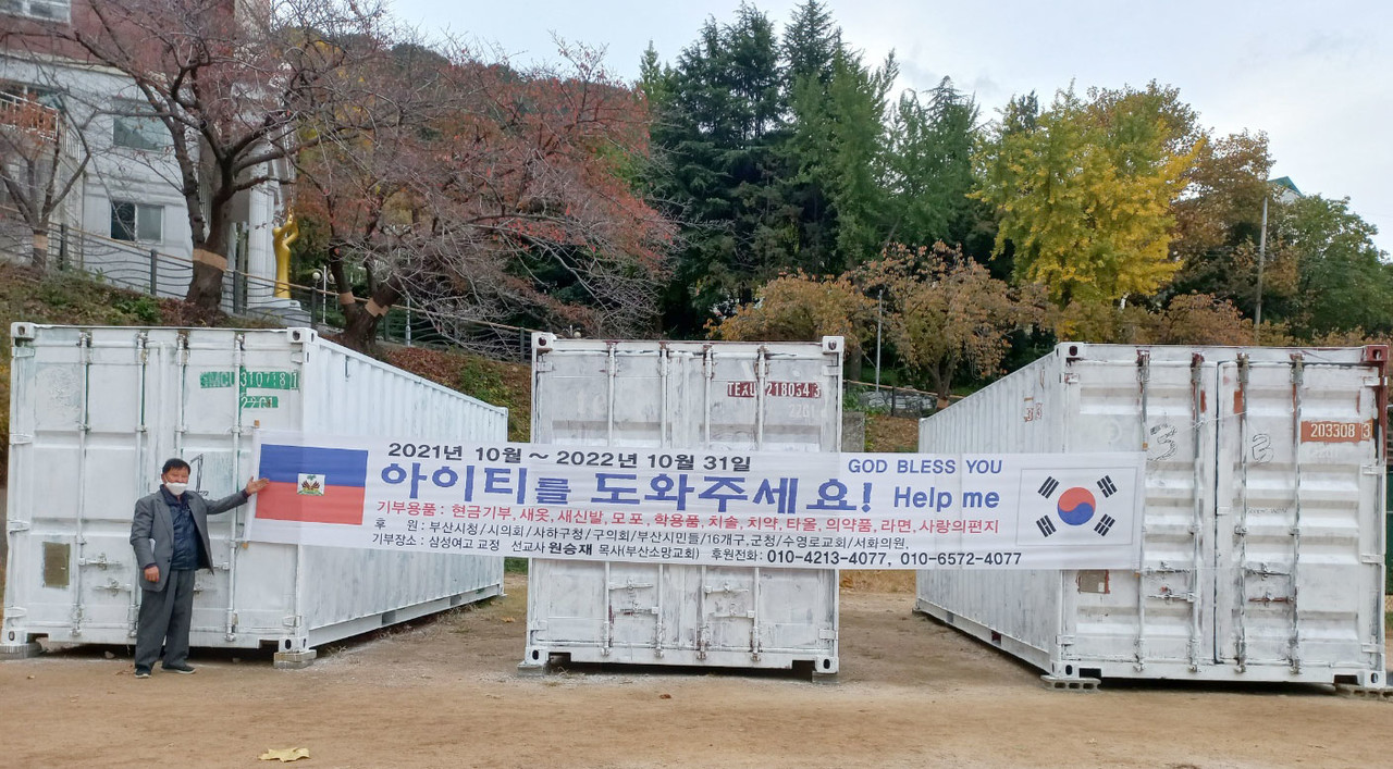 원 목사는 수개월에 걸쳐 홍성교회(이춘오 목사), 군산중동교회(서종표 목사), 수영로장로교회 등 다수의 교회와 부산시청, 부산시의회, 사하구청, 삼성여고 등의 후원을 받아 약 3,000가정을 구호할 수 있는 콘테이너 4개 분량의 구호품을 마련했다.