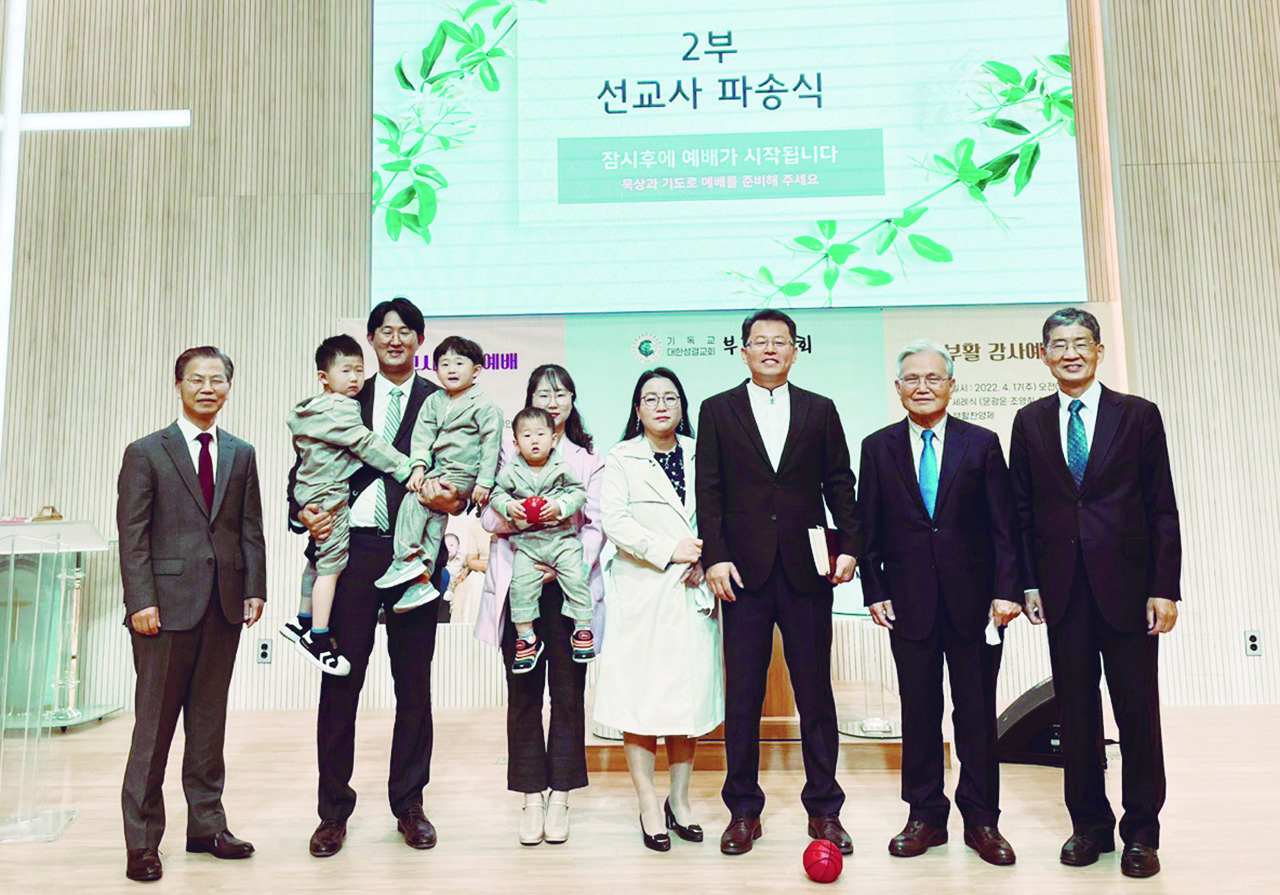 이어 선교사 파송예식이 거행됐다. 정문수 목사가 파송받는 피주훈‧신지은 멕시코 선교사 가정을 소개한 후 안수위원들과 파송안수기도를 드리고 후원 약정서와 파송장을 수여했다.