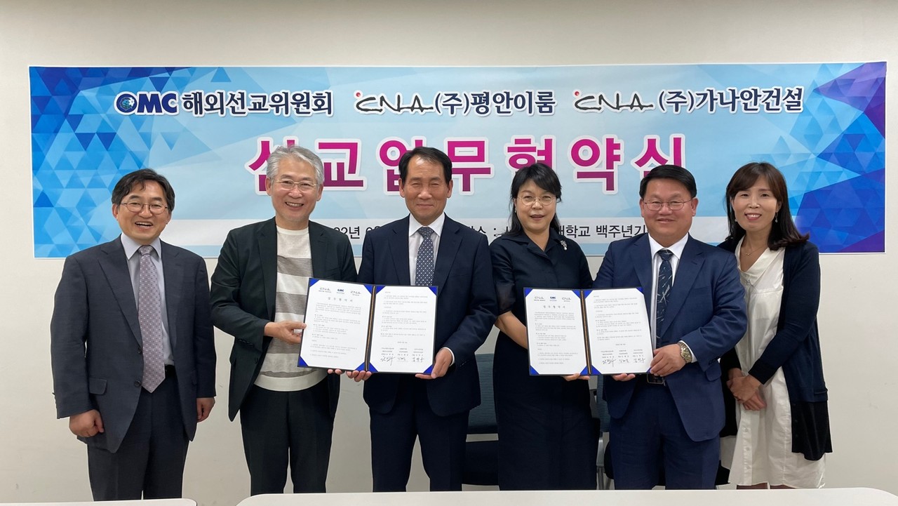 이날 협약은 ㈜평안이룸 마음회복센터(대표 신혜실)와 ㈜가나안건설(대표 김찬수 장로) 양측과 맺은 것으로 평안이룸에서 선교사 상담사역을 담당하고, 가나안건설이 후원을 약속했다. 이로써 해선위는 교단 선교사 상담 사역의 효과적인 발전을 기대하고 있다.