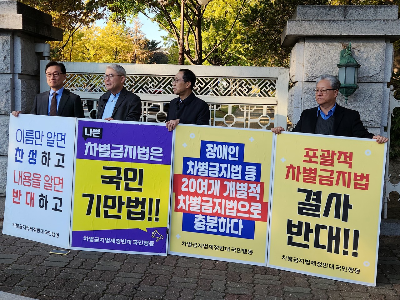 차별금지법반대기독교연합 공동대표인 한기채 목사는 지난 10월 20일 여의도 국회의사당 앞에서 “차별금지법은 표현과 양심, 종교의 자유를 억압하는 역차별법”이라며 “차별금지법이 왜 잘못된 법인지 분별할 수 있도록 국회의원들에게 제대로 알리고자 1인 시위에 나서게 됐다”고 밝혔다.