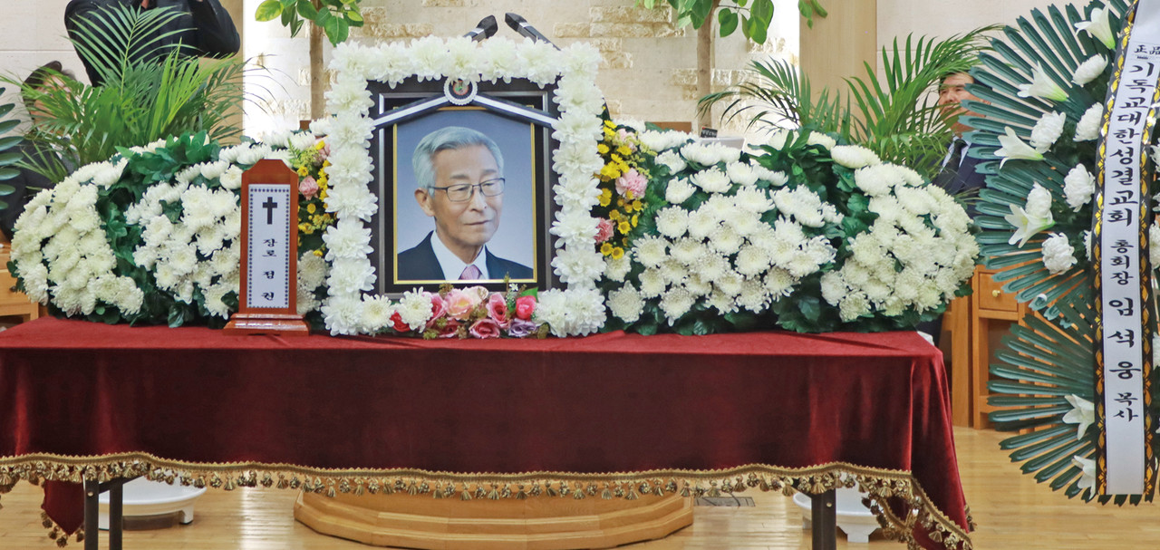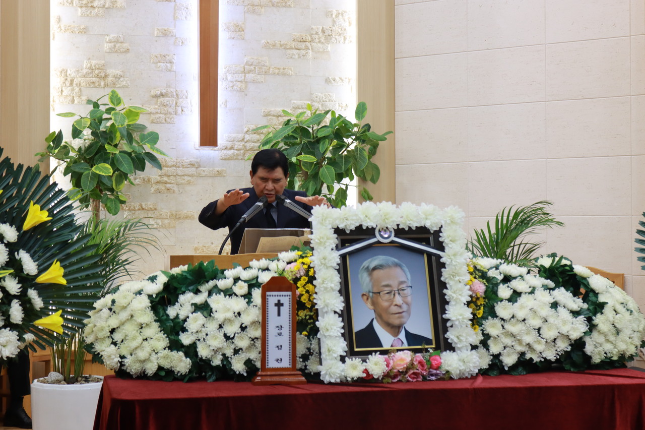 전 부총회장 김춘식 장로는 “바로 얼마 전에 장로님이 성백회 수련회에 참석 못하는 것을 미안해하며 버스까지 와 격려해 주셨다”라며 고인의 따뜻했던 마음을 그리워했다. 김 장로는 “많은 장로가 믿고 따른 우리의 멘토를 슬픔보다 기쁨으로 보내드리는 천국 환송 예배를 드린다”고 조사를 전했다.
