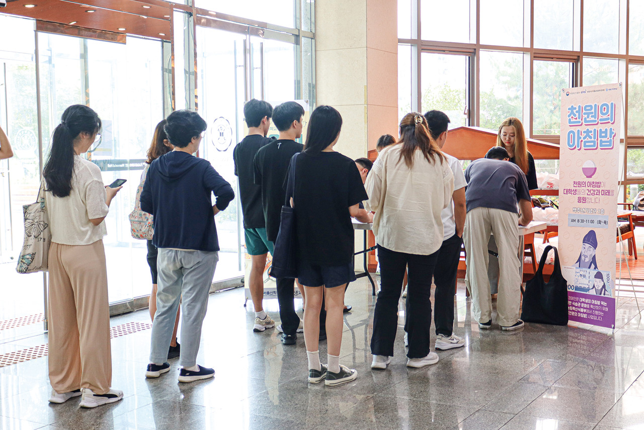 천원의 아침밥 시행에 학생들의 호응이 매우 높다. 기자가 찾은 5일 아침에도 학교가 준비한 100인 분의 아침밥이 20분 만에 동이 날 정도였다. 김밥 한 줄도 3000원이 넘는 시대. 천원짜리 한 장으로 아침을 든든하게 시작할 수 있다.
