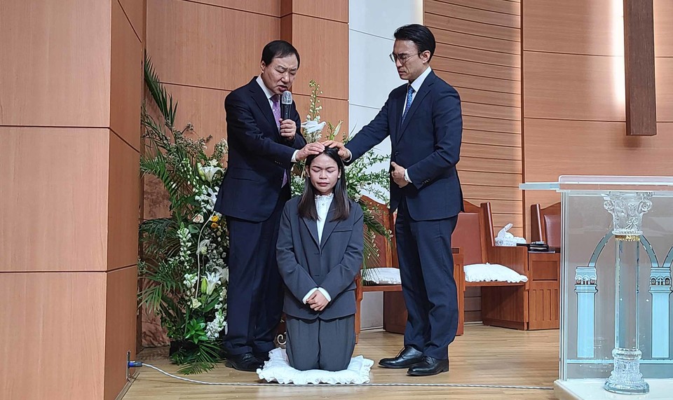 주신 목사와 김정봉 원로목사는 싸으 목사의 머리에 손을 얹고 파송기도를 했다. 성도들도 고국으로 떠나는 그녀를 축복하고 앞날의 사역을 위해 기도했다. 싸으 목사는 빼앙트로한신교회에서 담임교역자로 사역한다. 빼앙트로한신교회는 한신교획 2016년 세운 교회다.