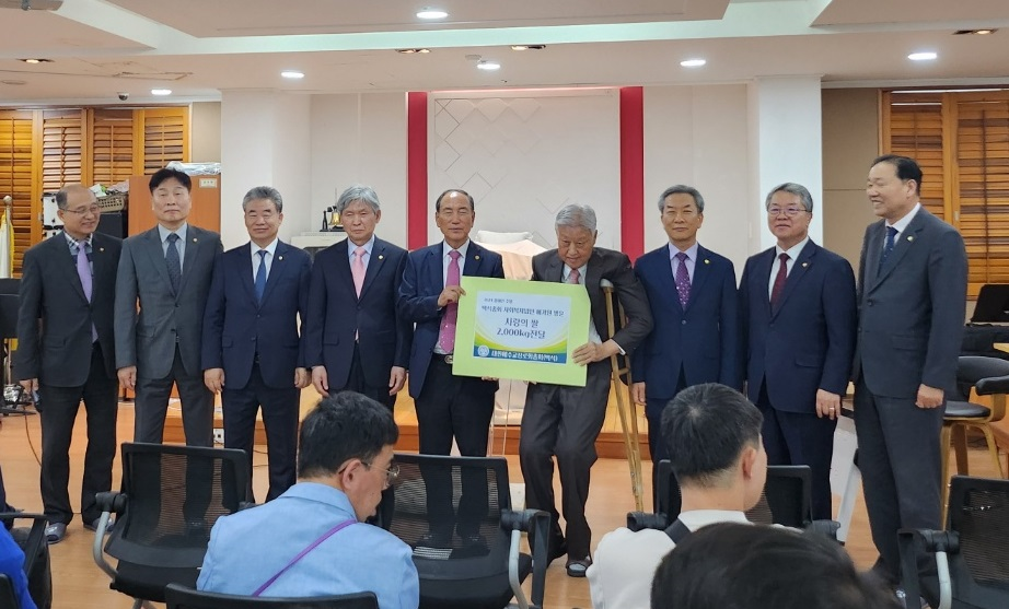 이날 김진범 총회장은 장애인 자립 자활을 위해 사용해 달라며 재정을 지원하고, 사랑의 쌀 2,000kg도 함께 전달했다. 김 총회장은 시설 내부를 돌아보며, 입소자들을 만나 대화를 나누기도 했다.