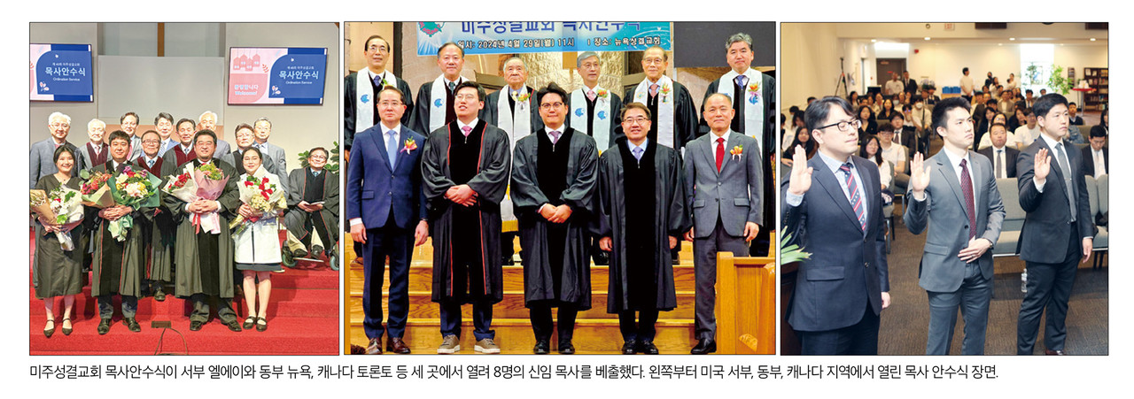 미주성결교회 목사안수식이 서부 엘에이와 동부 뉴욕, 캐나다 토론토 등 세 곳에서 열려 8명의 신임 목사를 배출했다.
