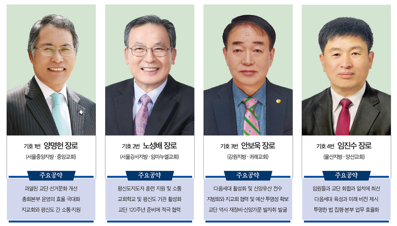 또 총회본부의 업무 효율화를 위한 전산화 시스템 구축도 언급했다. 그는 “빠른 전산화로 총회 재정 시스템이 더욱 편리하고 투명하며 효율적이면서도 비용도 절감하는 경영혁신을 이루겠다”고 강조했다.