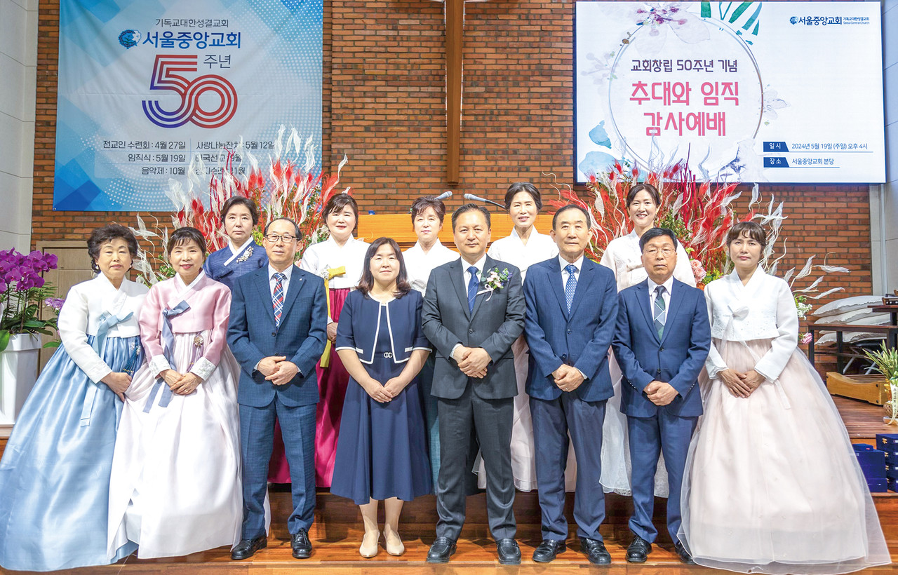 서울강서지방 서울중앙교회(김성수 목사)가 지난 5월 19일 50주년 기념예배 및 임직식을 열었다.