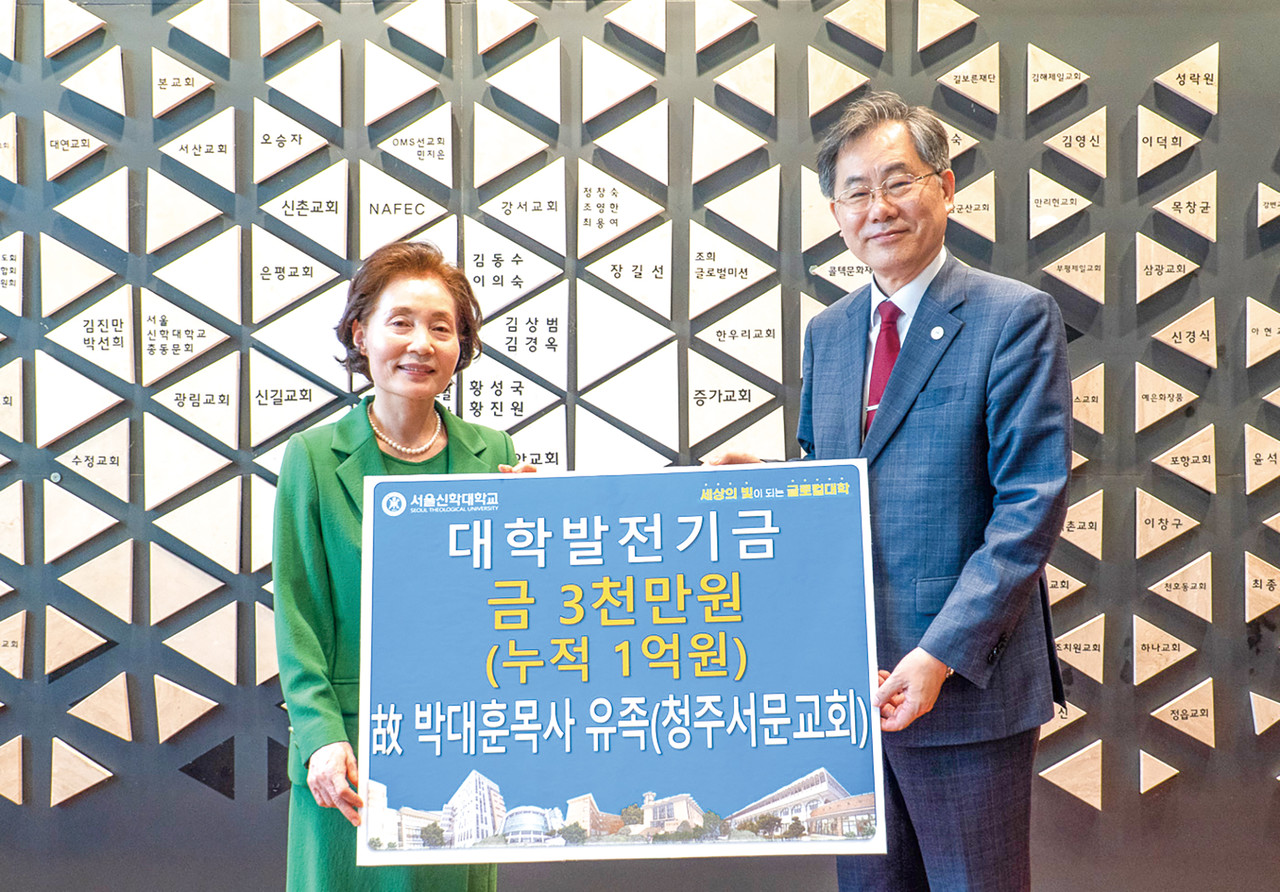 또 전 사모는 “목사님의 마음을 담아 대학발전과 학생들을 위해 필요한 곳에 사용되었으면 한다. 서울신학대학교를 위해 항상 기도하겠다”고 약속했다.