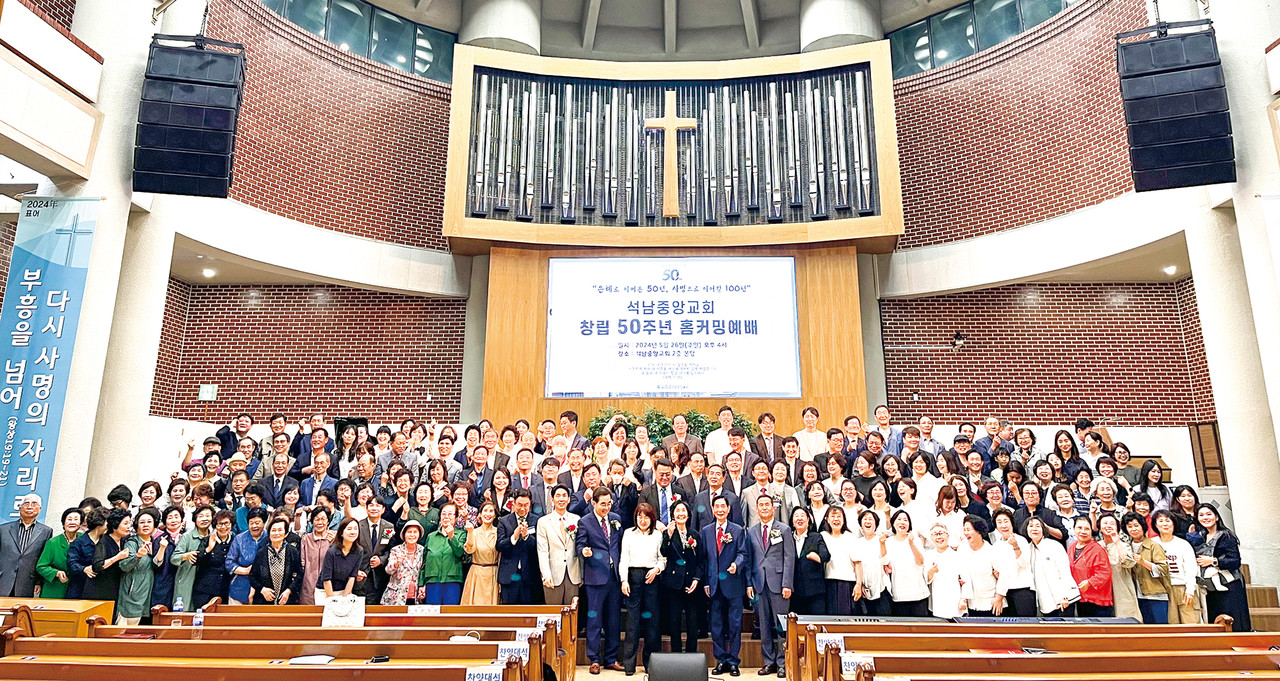 ‘은혜로 이어 50년 사명으로 이어갈 100년’ 인천서지방 석남중앙교회(이영록 목사)의 50주년 표어다. 올해 희년을 맞은 교회는 지난 5월 26일 창립 50주년 감사예배 및 홈커닝데이를 개최하고 부흥을 넘어 사명의 자리로 나아갈 것을 다짐했다.