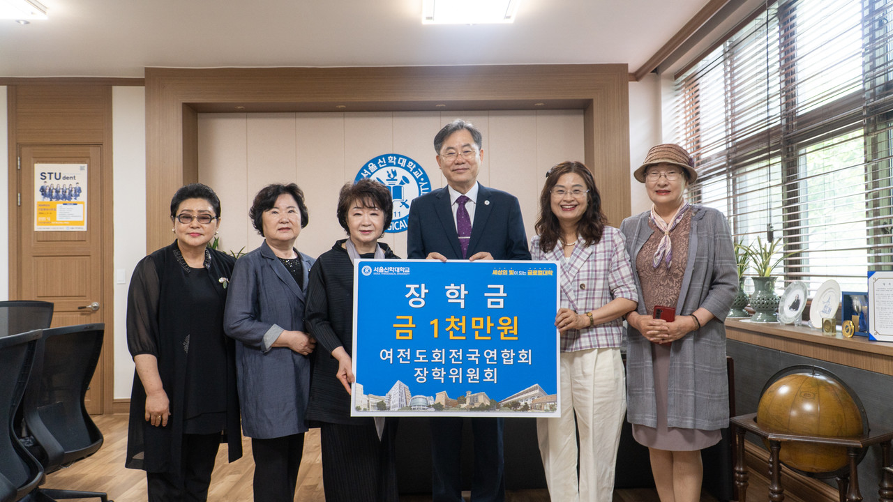 여전도회전국연합회 장학위원회(위원장 이윤지 권사)는 지난 6월 11일 서울신학대학교에 방문해 황덕형 총장에게 장학금 1000만원을 전달했다.