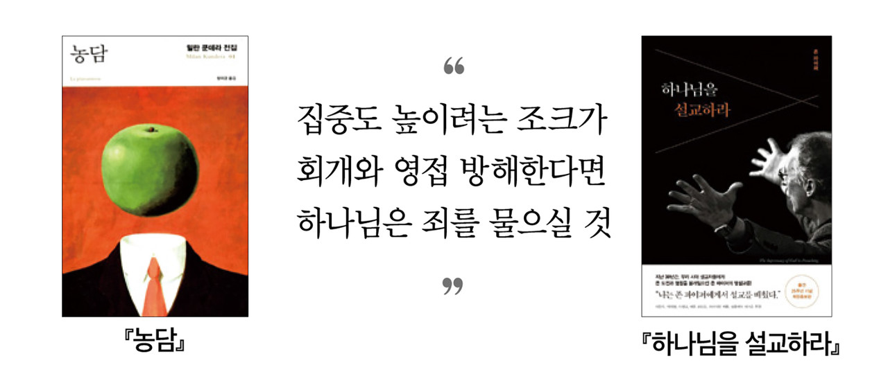 밀란 쿤데라의 책을 좋아하는 제게 『참을 수 없는 존재의 가벼움』이 전공을 철학에서 신학으로 바꾸는 데 어느 정도 역할을 했다면, 『농담』은 신학을 전공한 설교자가 갖추어야 할 자격에 관해 고민하게 한 책이었습니다.