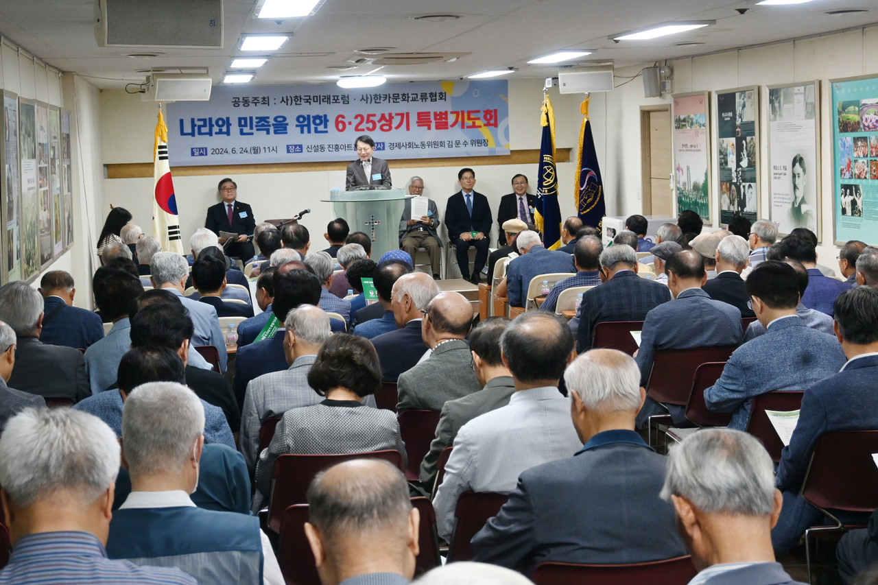 사단법인 한국미래포럼(회장 박경진 장로)과 한카문화교류협회(회장 최광혁 장로)는 지난 6월 24일 서울 동대문구 진흥아트홀에서 ‘나라와 민족을 위한 6.25상기 특별기도회’를 개최했다.