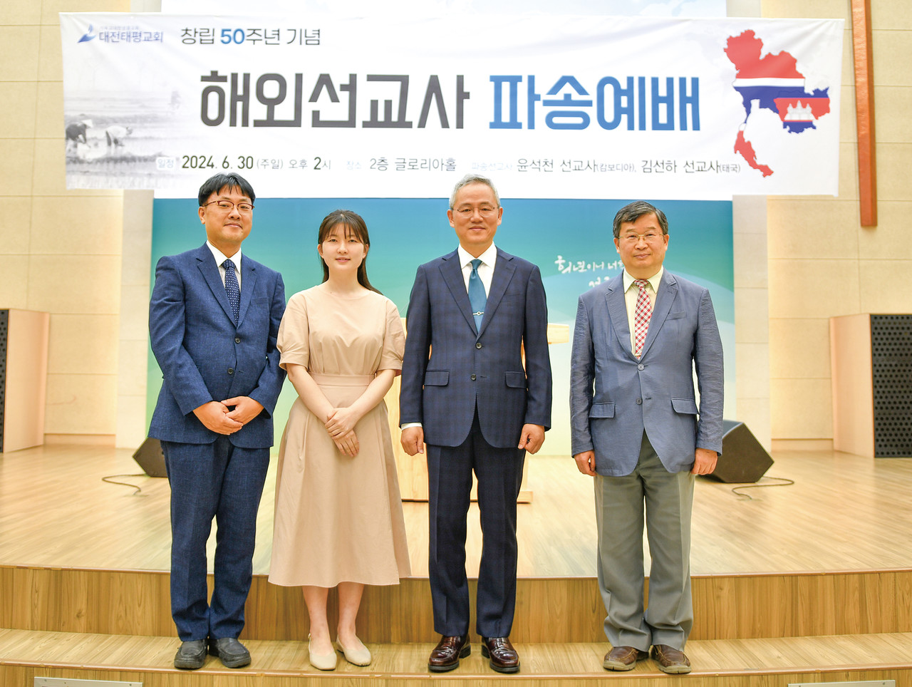 대전태평교회(한상현 목사)는 지난 6월 30일 창립 50주년을 기념해 선교사 2가정을 파송했다.
