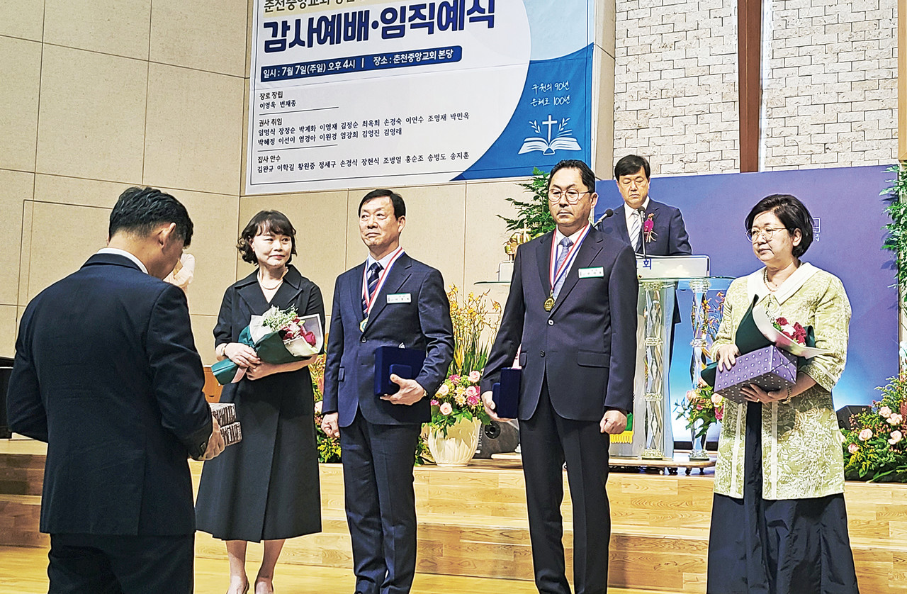 춘천중앙교회(장기동 목사)는 지난 7월 7일 창립 90주년 감사예배 및 임직예식을 열고 100년의 시대를 열어갈 새 일꾼을 세웠다.