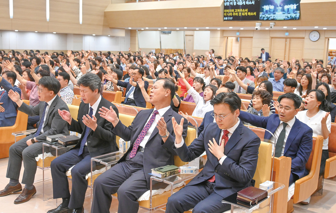 설교 후 김동근 목사(하나교회)와 조상운 목사(희년교회)가 한국교회와 세계선교, 로잔대회를 위한 10가지 기도제목을 두고 기도회를 인도했다.