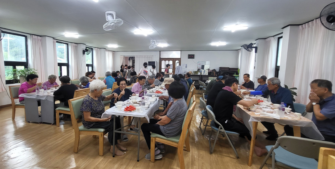 주민들은 맛있게 식사를 하면서 이웃끼리 오랜만에 서로를 보고 웃으며 봉사를 해준 중앙교회 봉사팀에게 감사의 인사를 건넸다.
