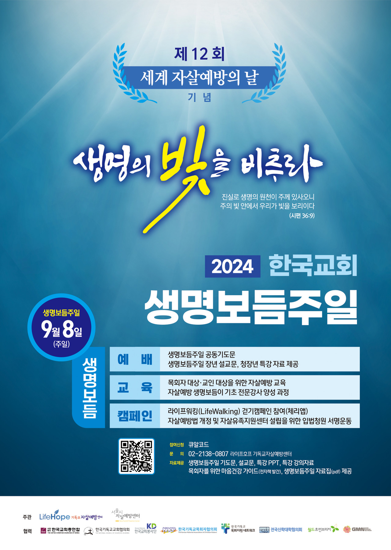 이런 상황에서 라이프호프 기독교자살예방센터(조성돈 대표)는 지난 8월 9일 한국기독교회관 조에홀에서 ‘2024 한국교회 생명보듬주일 선포식’을 개최하고 생명을 살리는 일에 한국교회의 적극적인 동참을 호소했다.