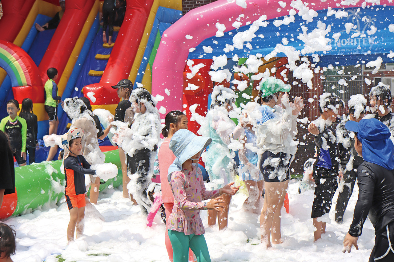 이번 비전워터파크는 교회의 다음세대뿐 아니라 지역 어린이와 그 가족들도 초청해 교회에 대한 친밀감을 높이고, 자연스럽게 복음의 메시지를 전하는 기회가 됐다. 교회 주차장에 설치된 대형수영장, 워터슬라이드, 대형 미스트터널 등 다양한 물놀이 기구를 통해 아이들은 하루 종일 마음껏 뛰어놀았다. 특히 올해는 버블머신이 추가돼 아이들이 더욱 신나게 놀 수 있었다.