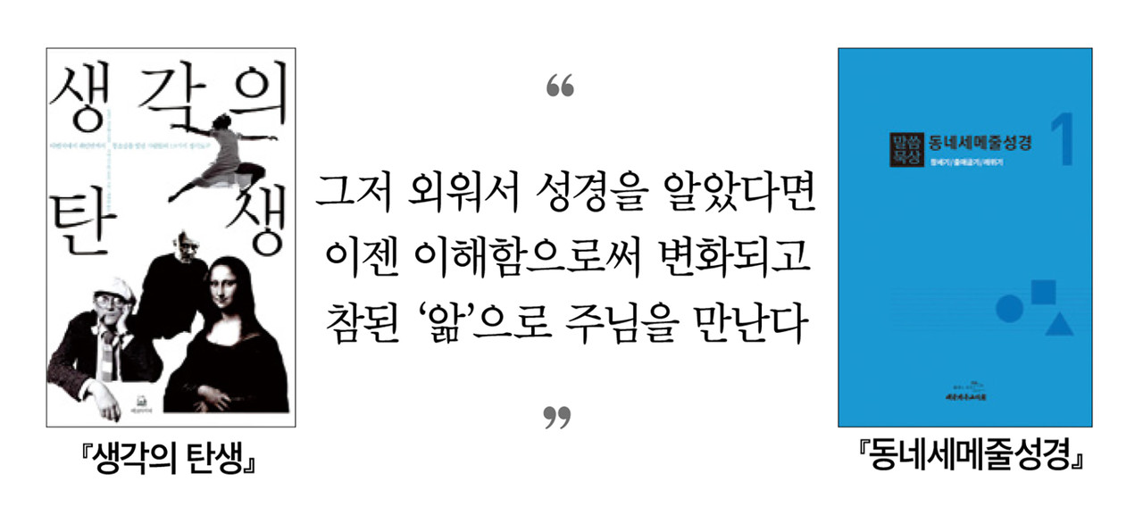 이번에 소개하는 일반 서적은 로버트 루트번스타인 교수와 미셸 루트번스타인 교수의 생각의 탄생』이고, 신앙 서적은 지형은 목사의 동네세메줄성경』입니다.