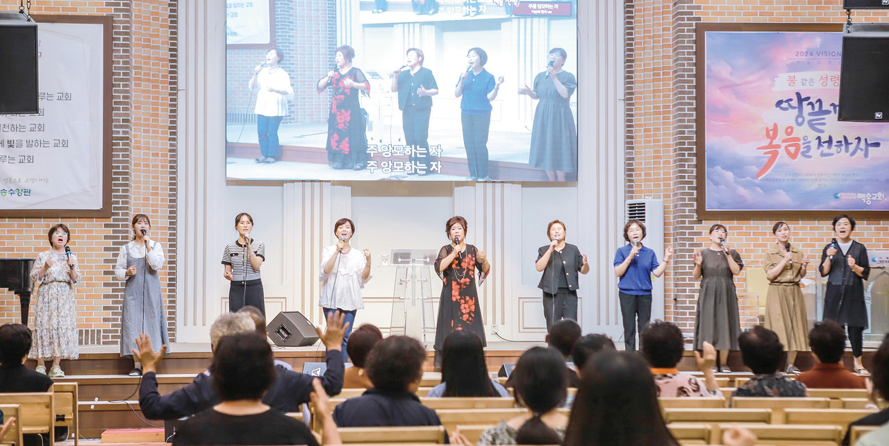 고향 대신에 백송교회(이순희 목사) 가족치유부흥회에 참석한 성도들이 가정의 회복과 내적 치유를 위해 가족들과 함께 뜨겁게 기도했다.
