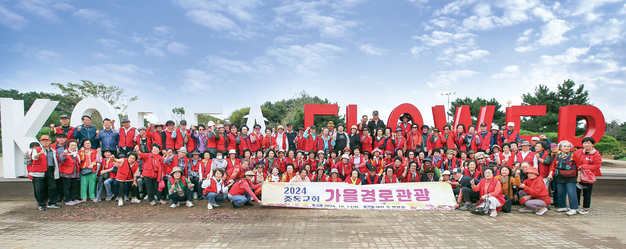 군산중동교회(서종표 목사)는 지난 10월 1일 태안에서 경로관광을 실시했다. 이번 경로관광은 70세 이상 노인 154명이 참석했으며 교회는 식사와 간식, 교통편을 제공하며 정성껏 섬겼다.