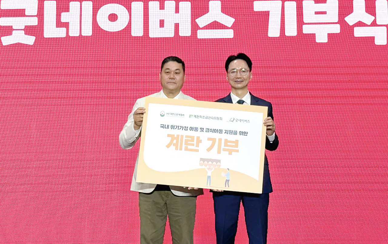 이번 기부금 전달식은 ‘에그 페스티벌’ 행사 중에 진행된 가운데 김중곤 굿네이버스 사무총장, 안두영 계란자조금관리위원회 위원장 겸 (사)대한산란계협회장 등이 기부금 1,000만원을 전달했다. 기부금은 국내외 위기가정 아동을 돕는 데 사용될 예정이다.