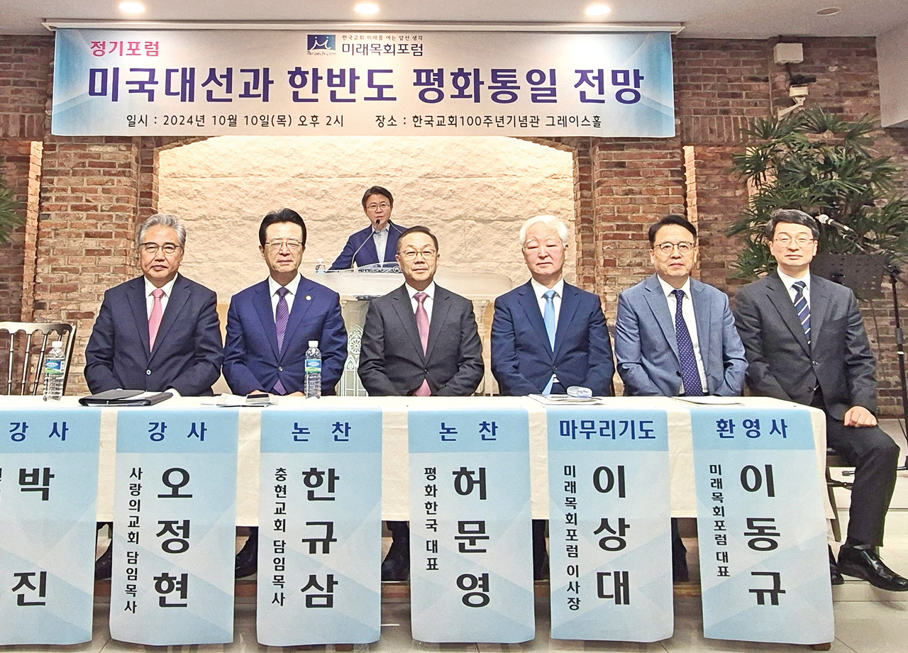 미래목회포럼(이사장 이상대 목사, 대표 이동규 목사 이하 미목)은 지난 10월 10일 한국교회백주년기념관에서 ‘미국 대선과 한반도 평화통일 전망’을 주제로 정기포럼을 개최했다.