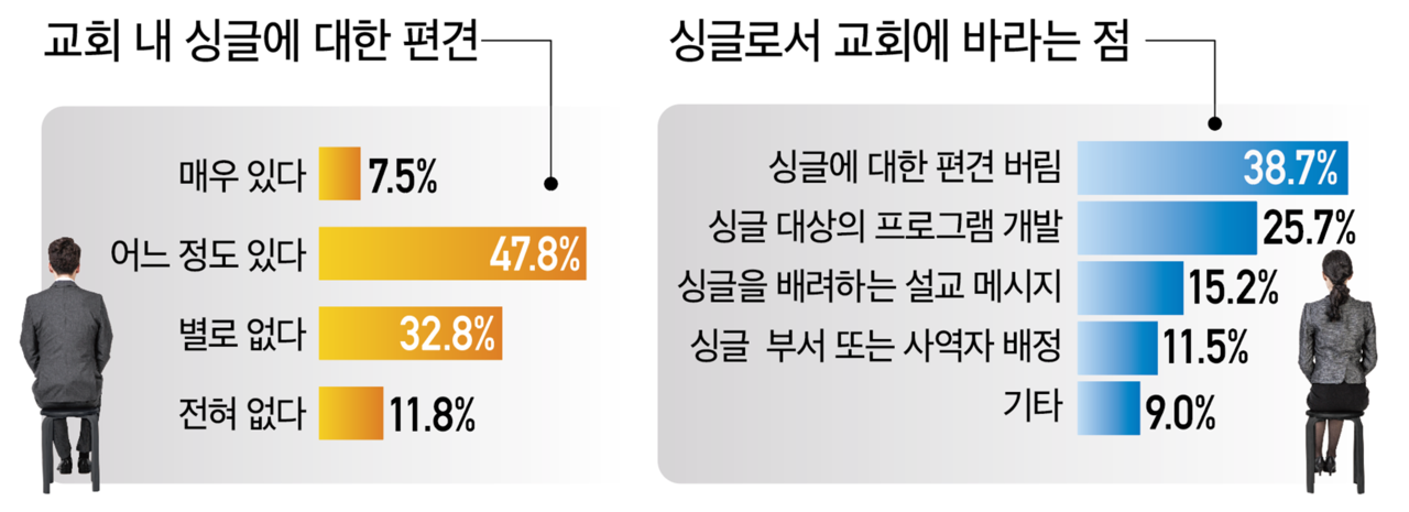 싱글·비싱글 개신교인, 목회자 모두 싱글 공동체의 필요성에 대해 공감했지만, 싱글 부서(모임)가 있는 교회는 10곳 중 1곳에 불과했다.