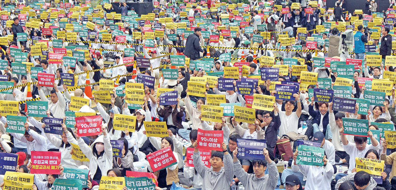 110만 명의 성도들은 ‘건강한 가정, 거룩한 나라’, ‘자녀들에 대한 동성애 주입교육 반대 개정교과서 폐기’, ‘동성커플 피부양자 인정으로 앞당겨지는 인구소멸’ 등의 문구가 적힌 피켓을 들며 침묵으로 기도했다.