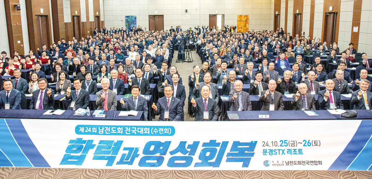 남전도회전국연합회(회장 조남재 장로) 제24회 전국대회(수련회)가 ‘합력과 영성회복’이라는 주제로 지난 10월 25~26일 문경STX리조트에서 열렸다. 이틀간 청명한 날씨 속에 전국에서 600여 명의 회원이 자리를 가득 메우며 성황을 이루었다.