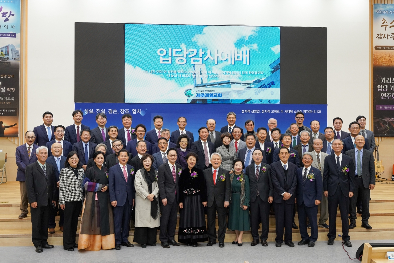 이후 교회의 부흥을 기뻐하며 제주제일교회 담임을 역임한 목회자들이 축복의 말씀을 전했다. 13대 담임 이신웅 목사, 16대 담임 김흔태 목사, 18대 담임 남수은 목사는 “모든 것이 주님의 은혜”임을 강조하며 성도들의 오랜 수고와 헌신을 격려하고 교회를 향한 하나님의 비전을 바라보라고 당부했다.