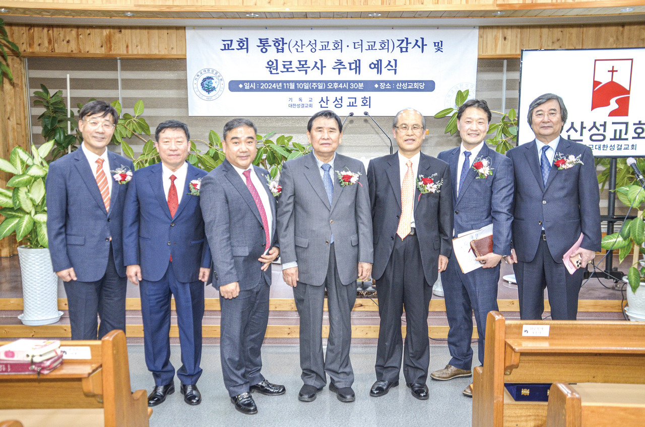 산성교회와 더교회 통합 감사 및 원로목사 추대예식이 지난 11월 10일 산성교회에서 열렸다.