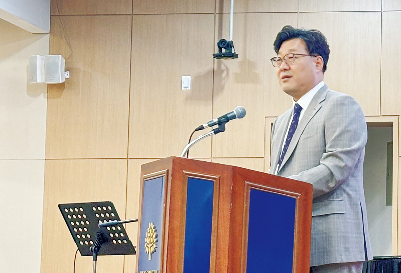 교목실장 이승문 교수의 사회로 시작된 예배에서는 ‘TMIM’(명지전문대학 실용음악과 찬양팀)의 특송과 이수광 명지전문대학 교목의 기도 후 김도석 목사(에덴교회·사진)가 “믿음에 굳게 서라. 감사하라”(골 2:6~7)는 제목으로 말씀을 전했다.