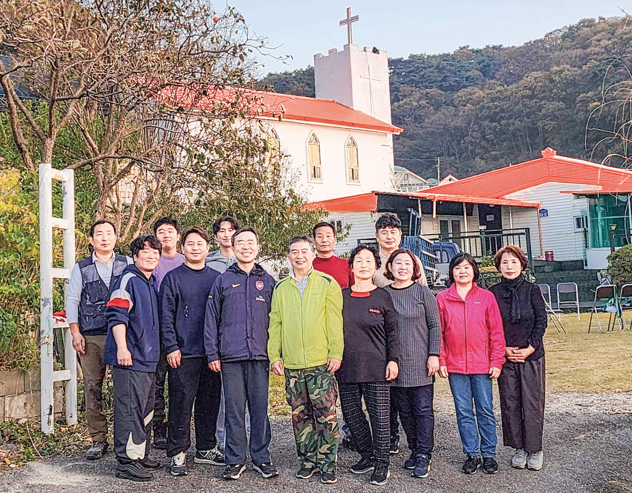 또 교인들의 오랜 바램이었던 교회 본당을 오를 수 있는 계단도 새로 설치해 성도들이 편하게 왕래하도록 했다. 이밖에 사택 현관 문틀 교체 등 다양하게 섬겼다.