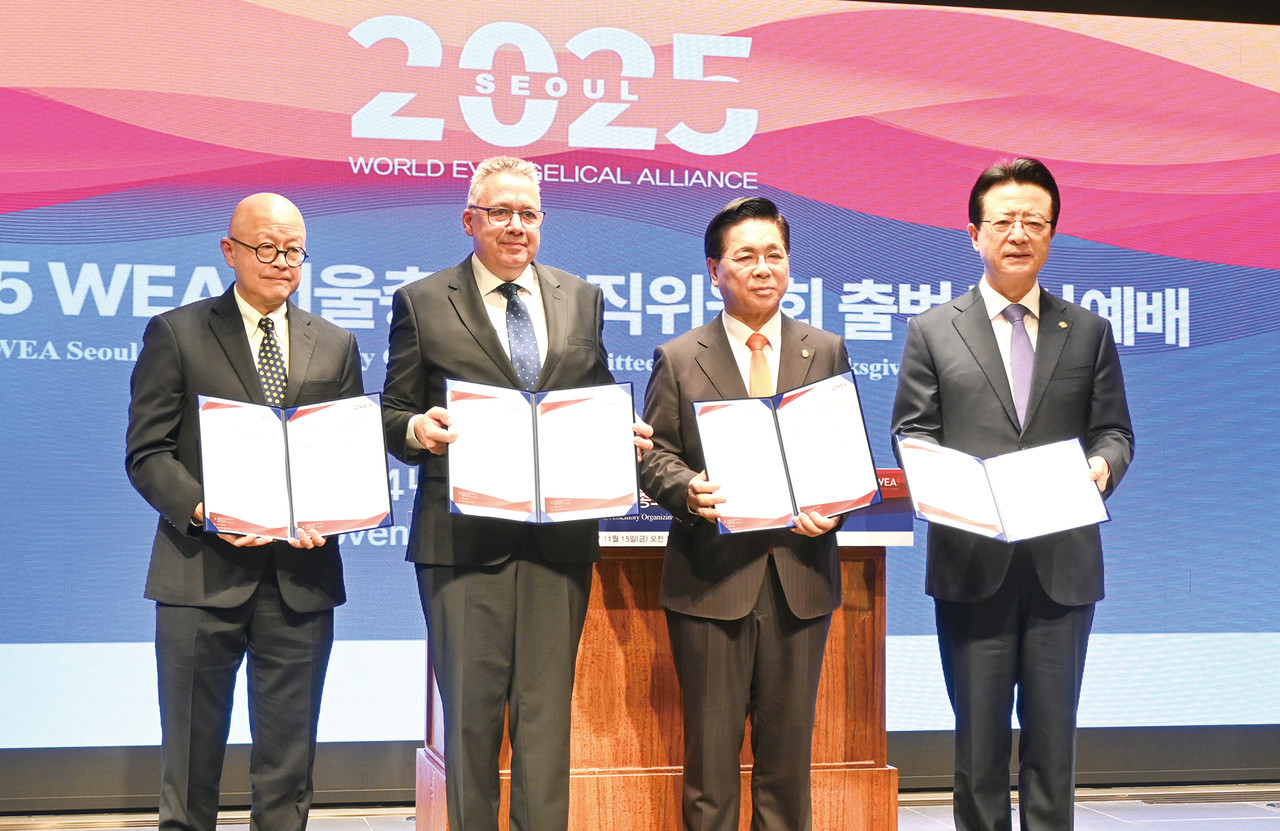 ‘2025 WEA 서울총회 조직위원회’는 지난 11월 15일 서울 여의도 CCMM빌딩에서 출범 감사예배를 드렸다. 조직위에는 한국교회총연합(대표회장 장종현 목사), 한국복음주의협의회(회장 임석순 목사), 아시아복음주의연맹, 세계개혁주의협의회가 참여하고 있다.
