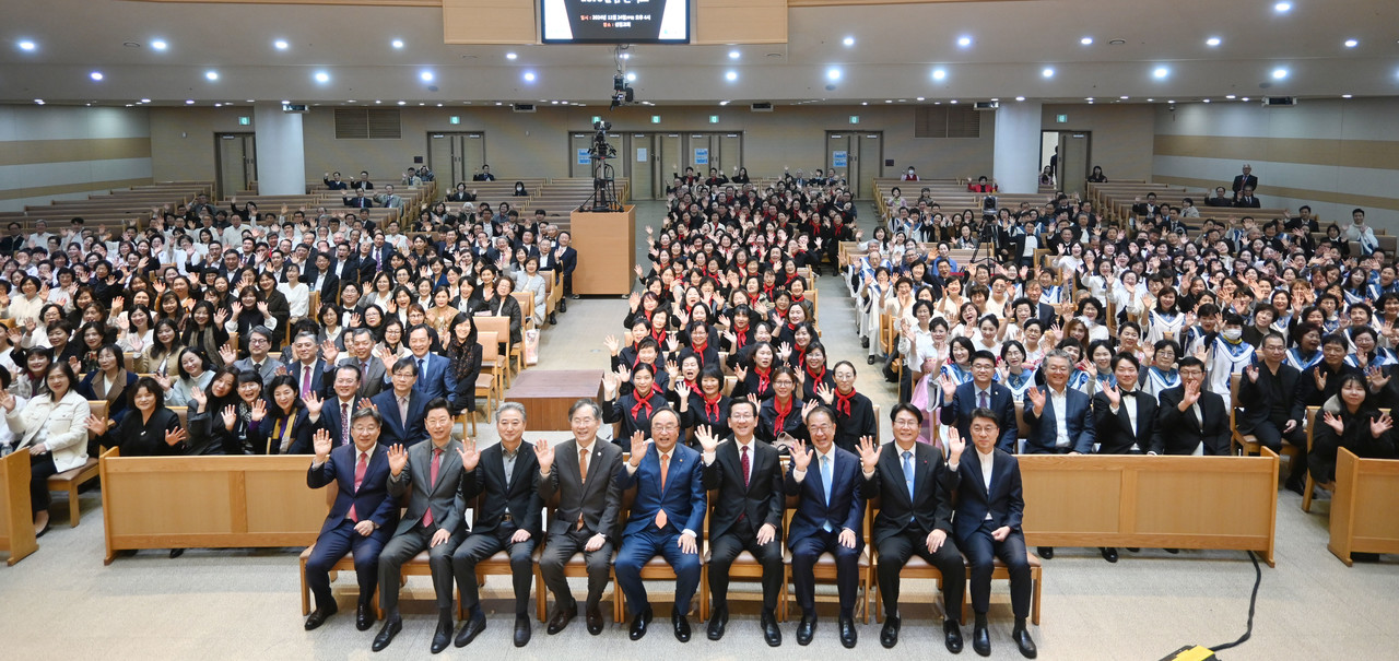 마지막 순서였던 본교회(조영진 목사) 연합찬양대는 빨간 스카프를 목에 두르고 성가곡 ‘기드온의 300용사’를 드라마틱하게 불러 분위기를 압도했다. 타악기와 관악기를 사용한 편곡이 곡에 박진감을 불어넣었다.