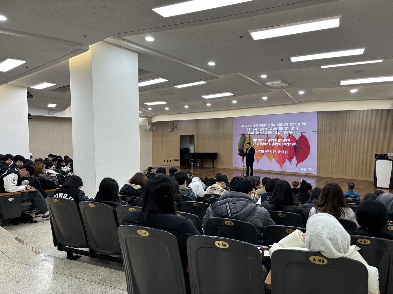또한 연합예배 이후 진행된 오후 인성채플 특강에서도 김 목사는 “한 차원 높은 감사”(합 3:17~18)라는 제목으로 학생들에게 말씀을 전했다. 김 목사는 작가 스펜서 존슨의 글을 인용하며, “세상에서 가장 소중한 선물(present)은 바로 지금(present)”이기에 “현재 나에게 주어진 시간에 감사하며 하루하루를 살아낼 것”을 강조했다.