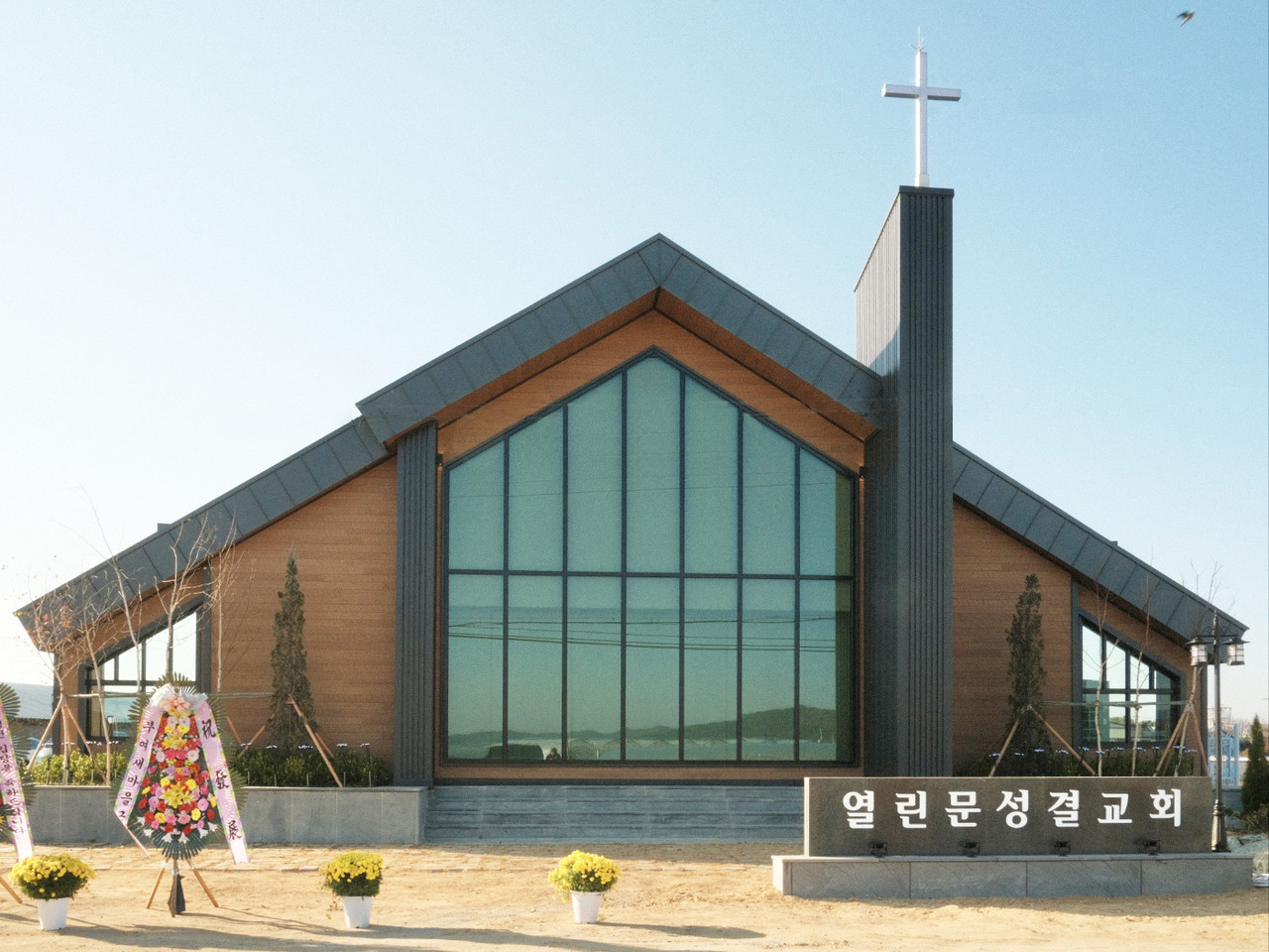 코로나가 한창이던 2020년 부여군 사비로의 한 빌라 지하에서 창립한 열린문교회는 모이기도 힘든 시기였지만 목회자와 성도들이 기도와 말씀으로 똘똘뭉쳐 어려움을 이겨냈고, 교회는 건강하게 성장해 설립 1년여 만에 4억원을 들여 군수리에 건축용지(788평)를 매입했고, 2023년 11월 새 예배당 건축을 결정한 후 올해 5월 착공해 11월 20일 준공허가를 받았다.