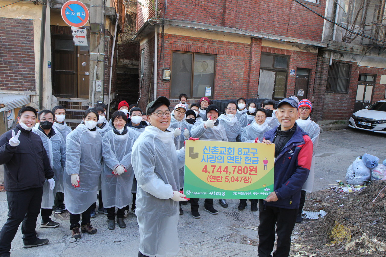 신촌교회 8교구(담당 김희범 목사) 소속 성도들은 지난 12월 7일 토요일 아침 서울시 서대문구 독립문 근린공원 인근 동네에 모여 이웃 가정에 연탄을 배달했다.