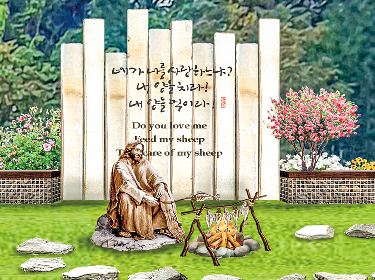 ‘생선 굽는 예수’ 조형물은 부활하신 예수가 호숫가에 숯불을 피워놓고 그 위에 생선을 굽고 있는 장면을 나타낼 예정이다. 제자의 허기를 채워주기 위해 친히 따뜻한 밥상을 차려주시는 모습에서 ‘지극히 작은 자 하나에게 한 것이 곧 내게 한 것이니라(마태복음 25장 40절)’라는 예수의 말을 떠오르게 한다.