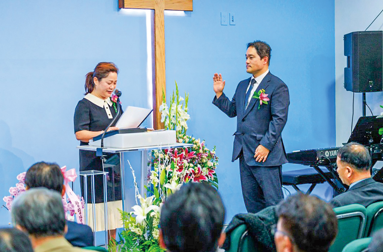 이날 예배는 엘에이지방회 목회자와 장로 등 120명이 참석하 가운데 동감찰장 한천영 목사의 집례로 엘에이지방 부회장 최은호 장로의 기도, 지방회장 재키 카오후 목사의 설교에 이어 전성제 목사의 서약과 치리권 부여 등으로 진행되었다.