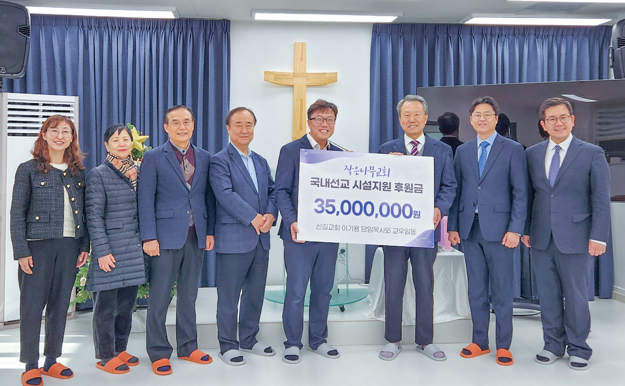 서울중앙지방 신길교회(이기용 목사) 국내선교위원회(위원장 이창수 장로)는 지난 12월 12일 경기도 이천 작은나무교회(김두일 목사)를 찾아 국내선교 시설지원 후원금 3,500만 원을 전달했다,