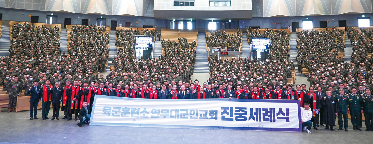 연무대군인교회에 모인 1,700여 명의 장병들이 세례를 받은 후 쩌렁쩌렁한 목소리로 힘차게 구호를 외쳤다.